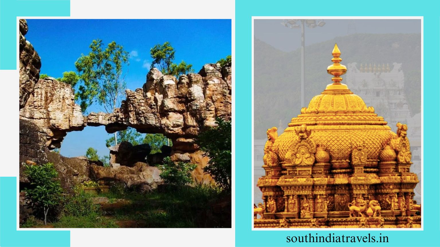 Silathoranam, a unique and mysterious attraction near Tirumala, is one of the three natural rock arches in the world. The formation is 3 meters high and 8 meters wide and looks similar to the hood of a serpent, discus, and conch. It is believed to be the source of the idol of Lord Venkateswara at Tirumala Temple, as both are of the same height. These rocks date back to the pre-Cambrian era, which means they are almost 1.5 billion years old. The best time to visit the place is between 6 a.m. and 8 a.m., or during sunset, when the arch looks mystical.