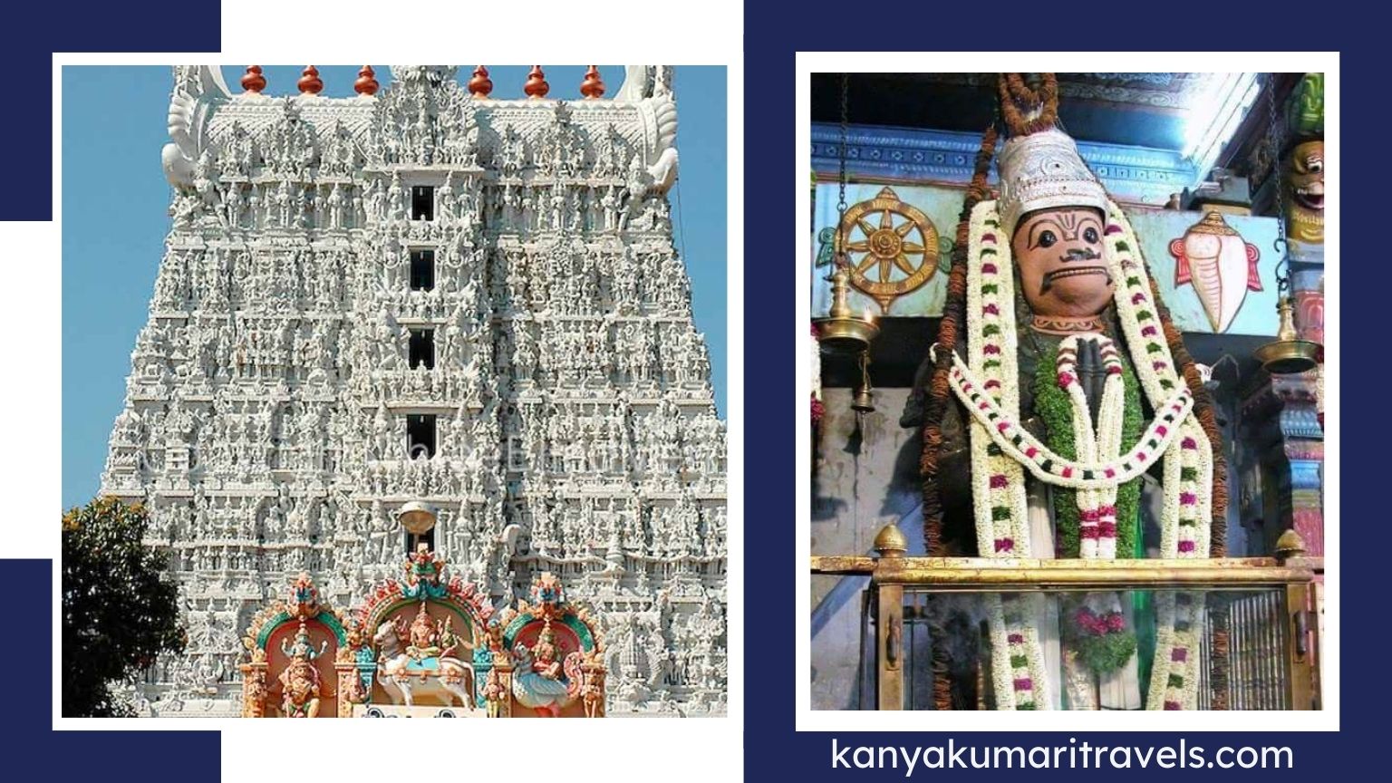 Suchindram Temple, also known as Thanumalayan Temple, is located in the Suchindram district of Kanyakumari, at a distance of around 11 km from Kanyakumari. The massive idol of Lord Hanuman, at a height of 22 feet, is sure to allure every devotee here. The statue has been carved out of a single granite rock. This state of Lord Hanuman, which is one of the largest statues in India, was kept hidden in the temple as attacks from Tipu Sultan were feared. Later in the year 1930, it was found and subsequently restored to its previous glory. Another striking aspect is the carving of Vinayaki (female Vinayaka) in the temple. Majestic Image of Nandi, vehicle of Lord Shiva, is also captivating, with a height of 13 feet, a length of 21 feet and width of 10 feet.