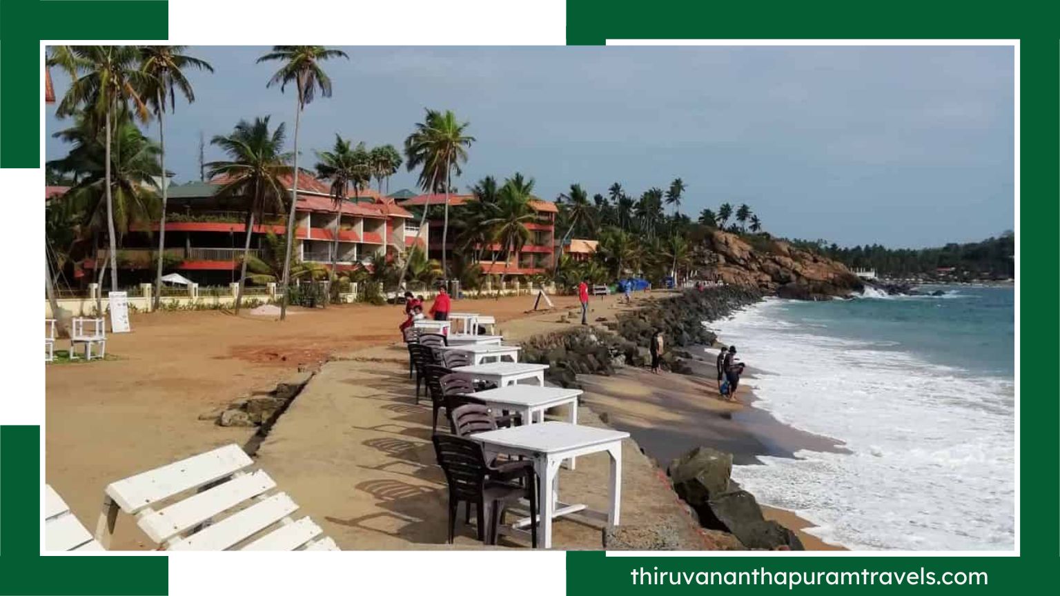 Hawa Beach is a top tourist destination in Kerala, as well as in Kovalam. The beach is famed as a natural wonder shaped like a boundary between the sea and the other parts of Kovalam. The wide stretch of sand glistens when sun rays fall on them from the clear blue sky and creates a contrast between the blue water and green-dotted palm trees.